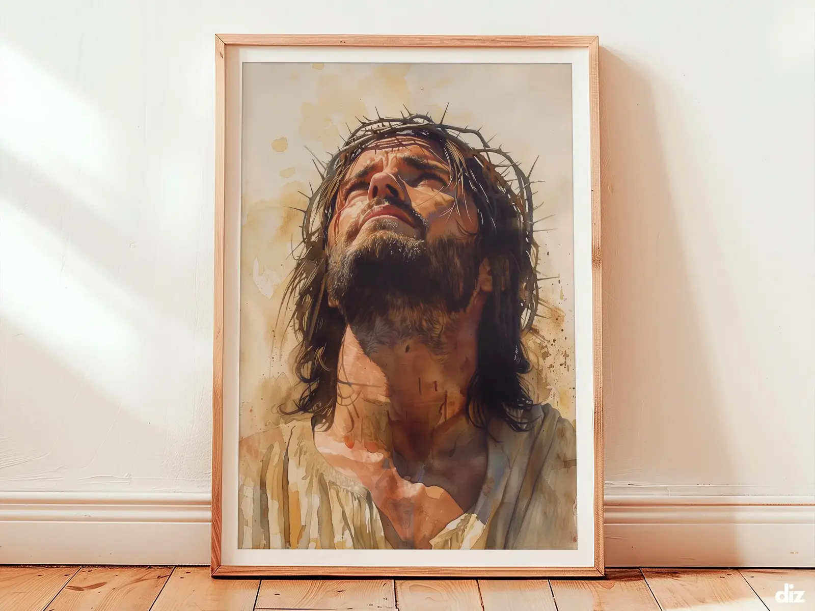 It preserves the human weight of Christ’s bearing, not as narrative, but as presence. The bowed head and softened radiance keep the moment open, unforced.
